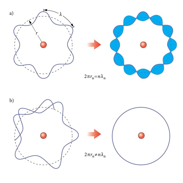Seega järeldub elektroni laineloomusest, et ta võib tuuma ümber tiirelda vaid teatud kindlatel orbiitidel raadiusega rn .