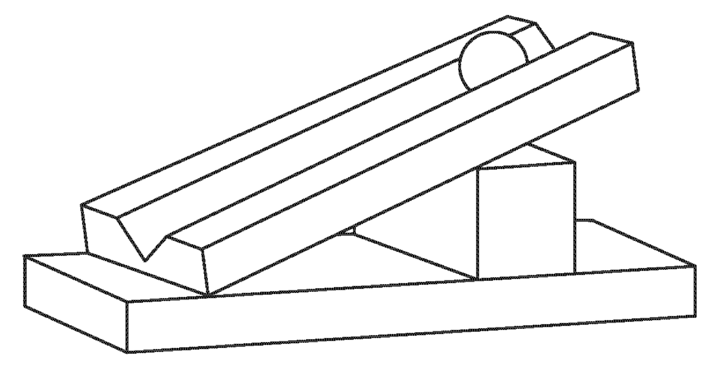 Galilei mõistis, et kehade vaba langemist uurides tekib tal raskusi aja mõõtmisega, ja ta otsustas muuta seda protsessi aeglasemaks, lastes kehal liikuda mööda kaldpinda. Ta teadis, et seejuures muutub vaid liikumise ulatus, ja nii korraldas ta järgmise katse. Ta lõikas kõvasse puusse renni, asetas selle kaldu, laskis pronkskeral paigalseisust mööda renni alla veereda (joonis 1) ja mõõtis eri lõikude läbimiseks kuluvaid aegu. Et kelli tol ajal veel ei olnud, siis kaalus Galilei vett, mis selle aja vältel suure anuma peenikesest torust välja voolas. See aeg oli üsna suure täpsusega võrdeline ruutjuurega läbitud tee pikkusest. Järelikult pidi kiirendus olema jääv. Tema ennustus oli leidnud kinnitust.