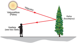 Alustame objektide värvusega. Proovime tekitada arusaamise, et kehalt peegeldunud valguse spekter on üldiselt teistsugune kui sellele langenud valguse spekter.