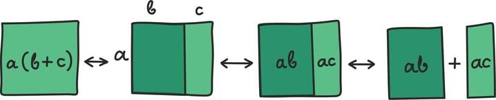 Üks viis on öelda, et meile meeldiks, kui korrutamine ja liitmine saaksid omavahel hästi läbi. Tahaksime, et võiksime näiteks kenasti sulge avada ja kirjutada: