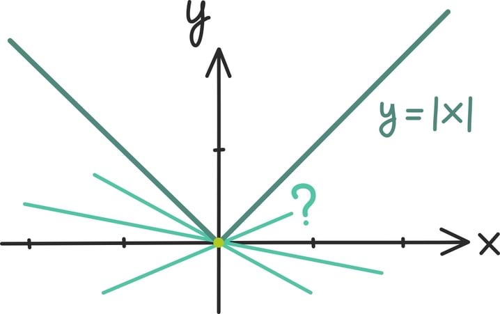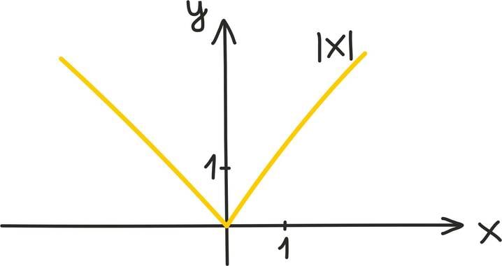 Kui leiame iga reaalarvu jaoks tema absoluutväärtuse, saame järgmise graafiku – funktsiooni |x| graafiku.
