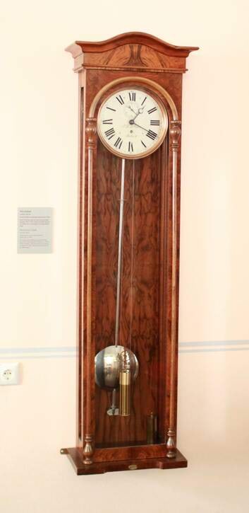 | Veel üsna hiljuti olid pendelkellad hinnatud ajamõõtjad. Uuri seda joonist. Kas saad aru, miks pendel seisma ei jää, ehkki selle liikumist takistab nii hõõrdumine kui ka õhk? | F. L. Löbneri Saksamaal valmistatud pendelkell. Eesti õige aja teenistuse peakell 1920-1940, mida kontrolliti Naueni või Eiffeli torni raadiojaama ajasignaalide järgi. Üle Eesti saadeti tähetornist signaal |