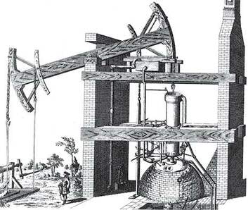 Parempoolsel pildil on vana gravüür, millel kujutatud Thomas Newcomeni poolt Inglismaal 1712. aastal ehitatud aurujõul töötav kaevandusest vee eemaldamise pump.