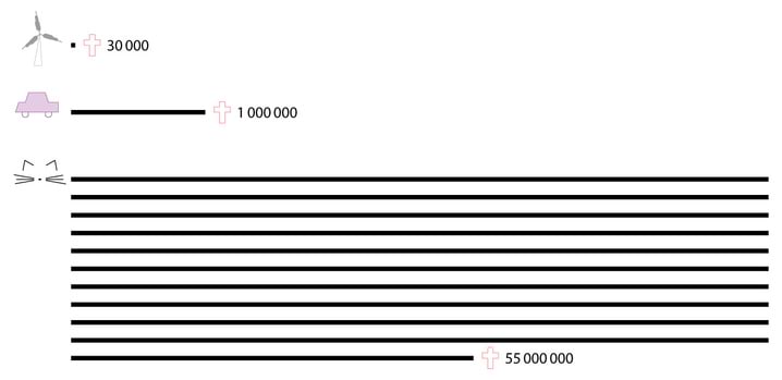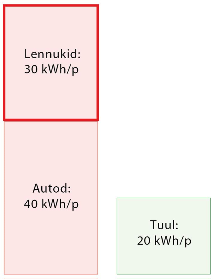 Veel üks meeldejääv arv on pikamaalendude panus inimese energeetilisse jalajälge. Kui te lendate kord aastas Kaplinna ja tagasi, kulutate selle reisiga sama palju energiat, kui kulub aasta läbi iga päev autoga sõitmisele.