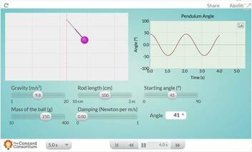 | Füüsika üks eesmärke on luua loodusest kõige üldisemaid mudeleid. Pildil on Maa, Kuu, Merkuuri ja Päikse planetaarmudel, mis annab edasi olulisema informatsiooni nimetatud planeetide liikumise kohta. | Füüsikaliste objektide lihtsustatud mudeleid leiab näiteks arvutisimulatsioonides. Selles simulatsioonis jäetakse arvestamata terve hulk pendli liikumist mõjutavaid faktoreid. |