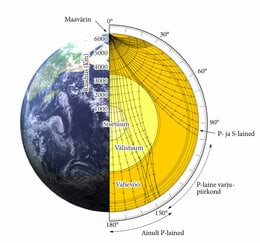 Kõrvaloleval pildil on näha, et maavärina epitsentris moodustuvad lained ei jõua igal pool Maa teisele küljele. Maa tuum tekitab varju, nii et kui on teada maavärina toimumise koht ning seismojaamade võrgustik annab piisavalt tihedalt andmeid maapinna võnkumiste kohta, saab selle järgi teada Maa tuuma suuruse. Enamgi veel – pildil on näha, et lained ei levi läbi Maa otse, vaid nad murduvad. Lainete murdumine on sarnane sellega, mida õppisime põhikooli valgusõpetuses – nii nagu muutub valguskiire suund, kui see levib hõredamast (väikese tihedusega) keskkonnast tihedamasse (suurema tihedusega keskkonda), muutub ka laine suund. Seetõttu saame maavärina lainete levides andmeid ka Maa kihilise sisestruktuuri kohta.