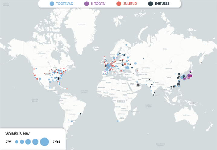 2020. aasta novembri seisuga on maailmas töös umbes 450 reaktorit (koguvõimsusega ligikaudu ) ja ehitusjärgus on veel (lisandub tootmismahust). Tuumaenergiat kasutab 31 riiki ning eriti agaralt plaanivad uusi reaktoreid ehitada Hiina, India ja Lõuna-Korea.