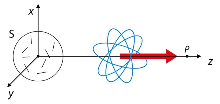 Olgu kihis dz paiknevate 2-nivooliste aatomite hõived ja ning langev valgus kiiritustihedusega levib väikesesse ruuminurka dΩ, Jn 11.9A. Vabakiirguse panuse otsesuunas levivasse valgusse võib lugeda tühiseks, sest dΩ/4π≪1.