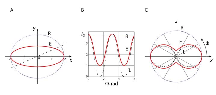 Enamikel juhtumitel on 3-mõõtmelised nähtused, Jn 1.2A, esitatud 2- mõõtmeliste lõigete, Jn 1.2.B, või projektsioonidena, seega horisontaalne joon sel joonisel on lahutuspinna lõikejoon langemistasandiga. Kui on võimalus mitmeti mõistmiseks, on joonisele lisatud ka koordinaattelgede orientatsioon. Joonistel kujutatakse valguse levikusuunda kiirena.