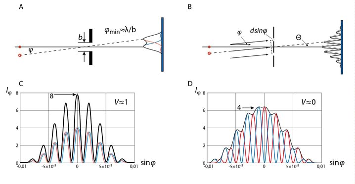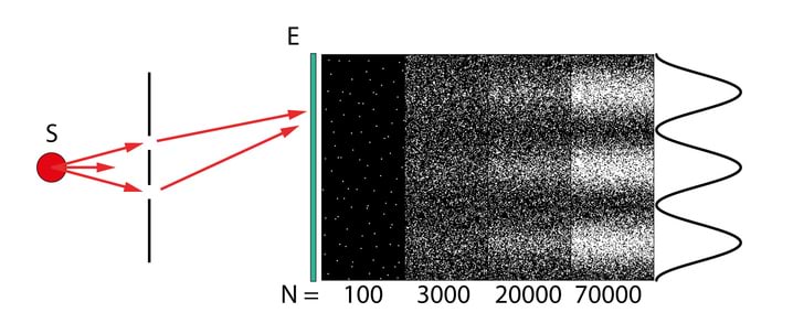 Tõenäosus footoni leidmiseks mingis ekraani punktis on võrdeline klassikalise valguse intensiivsusega selles punktis. Joonisel on näha, kuidas footonite koguarvu suurenemisel hakkab intensiivsuse jaotus ekraanil järjest rohkem sarnanema klassikalisele intensiivsuse jaotusele. Samas aga ei tähenda see seda, et interferentsipilt kujuneb välja footonite vastasmõju tulemusena – igal individuaalsel footonil on laineomadused st kuigi footon on jagamatu, interfereerub ta vaid iseendaga.