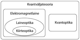 Kvantoptika kirjeldab adekvaatselt valguse ja aine vastasmõju tuues sisse seda vastasmõju kirjeldavad fenomenoloogilised suurused. Kvantväljateooria ühendab laine- ja kvantoptika, Jn 1.6.