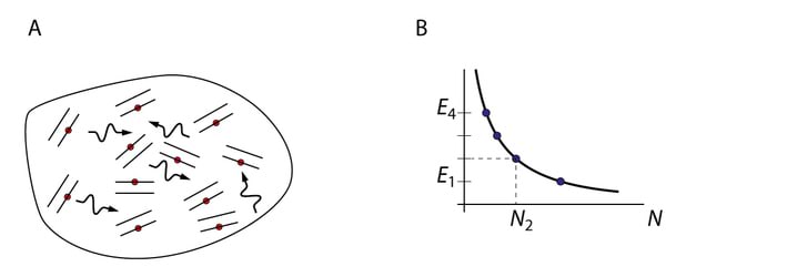 kus on selle oleku energia ja on süsteemi temperatuur. Joonisel Jn 11.5B on kujutatud aatomi diskreetsete energianivoode ja neile nivoodele vastavate hõivete vaheline sõltuvus. tihedus välises väljas vastavalt Boltzmanni jaotusele