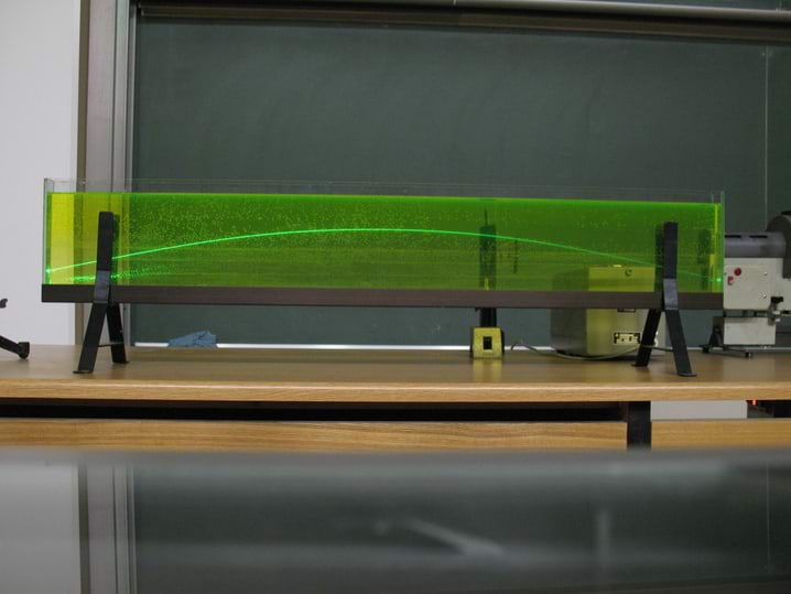 Joonise Jn 11.7 fotod demonstreerivad hajumise, ergastamise ja neeldumise sõltuvust fluorestseeruvale keskkonnale langeva valguse lainepikkusest , tekkinud pildid on seletatavad joonise Jn 11.6 baasil. Punane laserikiir ei ergasta, ei neeldu ega ka haju märgatavalt. Kuna hajunud valguse intensiivsus , siis lühema lainepikkusega rohelise laseri valgus hajub juba märgatavalt, kiir on nähtav ka külgsuunas, kuid märgatavat neeldumist ja ergastamist ei toimu. Sinise laseri valgus hajub tugevasti ja ergastab ka kristalli molekulid kõrgemale energianivoole, kus toimuvate üleminekute tulemusena kiiratakse pikemalaineline roheline valgus, mis on nähtav läbi kristalli külgseina.Nende protsesside tõttu laserikiire intensiivsus kahaneb oluliselt.